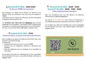 Afin que vous et votre enfant puissiez mieux nous connaître, nous avons le plaisir de vous proposer plusieurs événements de découverte 🎉🏫.